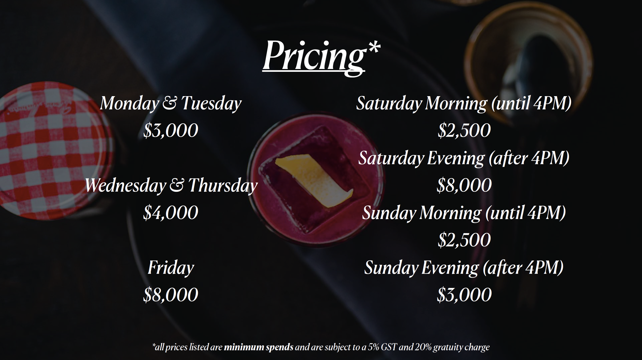 Event Bookings Name * First Name Last Name Email * Phone (###) ### #### Event Type * Seated Dinner Standing Reception Other Preferred Date * MM DD YYYY What is your budget? * Anything else we should know about your event? Thank you for your inquiry!Someone will be in touch within 3-5 business days.Remember to check your spam folders if you haven’t heard back from us.